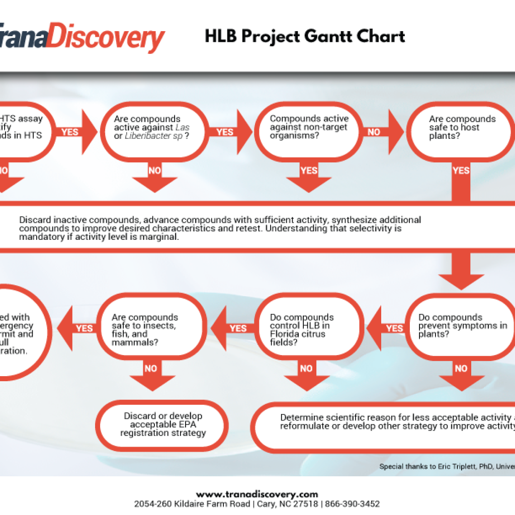 Trana is currently pursuing collaboration and licensing agreements with agriculture companies, academic institutions and other organizations for its assays, lead chemistries, target pathogens, and indications in the areas of fungal disease control. For more information, contact us at info@tranadiscovery.com.